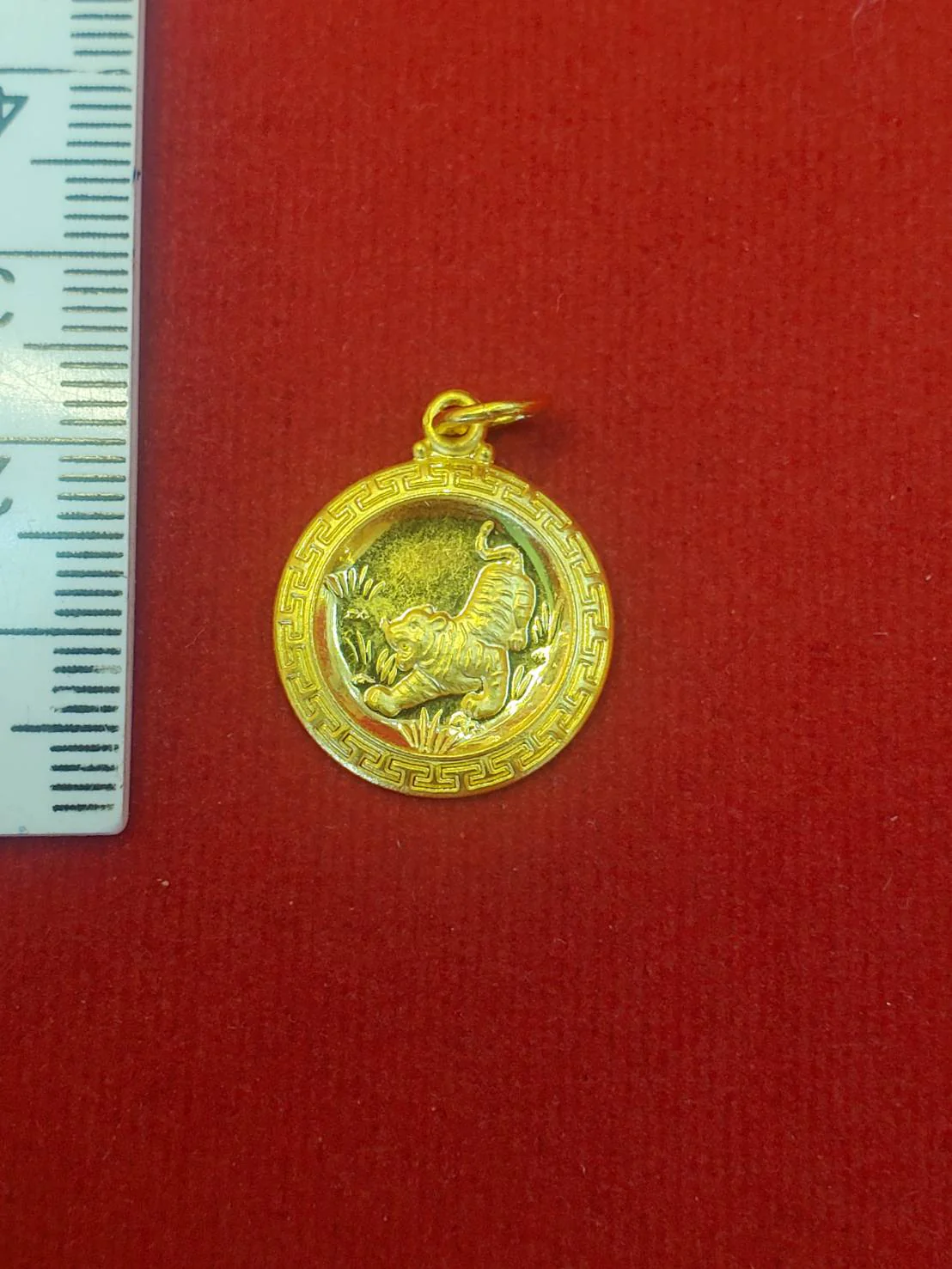 23K gold Year of the Tiger pendant (96.5% pure gold) has a bold, confident look with a warm natural gold shine. In Chinese astrology, the Tiger represents courage, power, and leadership, and this piece reflects those qualities in a strong yet wearable design.