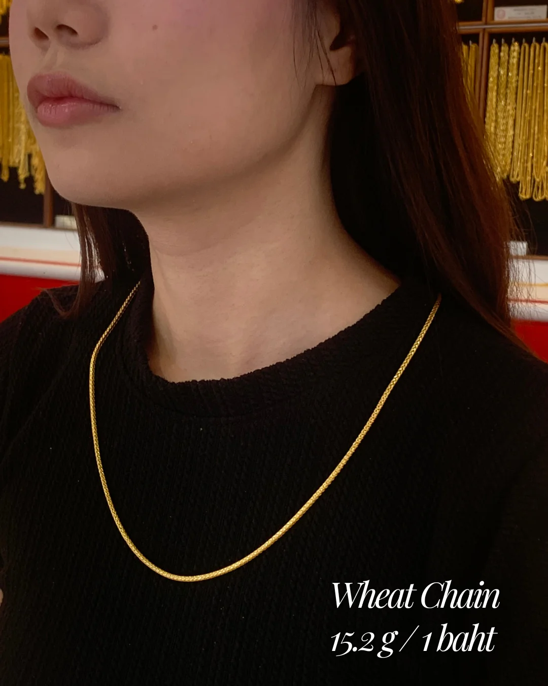 Graceful and fluid, the Wheat Chain is a classic piece with four intertwining strands forming a woven pattern. Made from high karat gold, it drapes beautifully for both casual and formal wear.